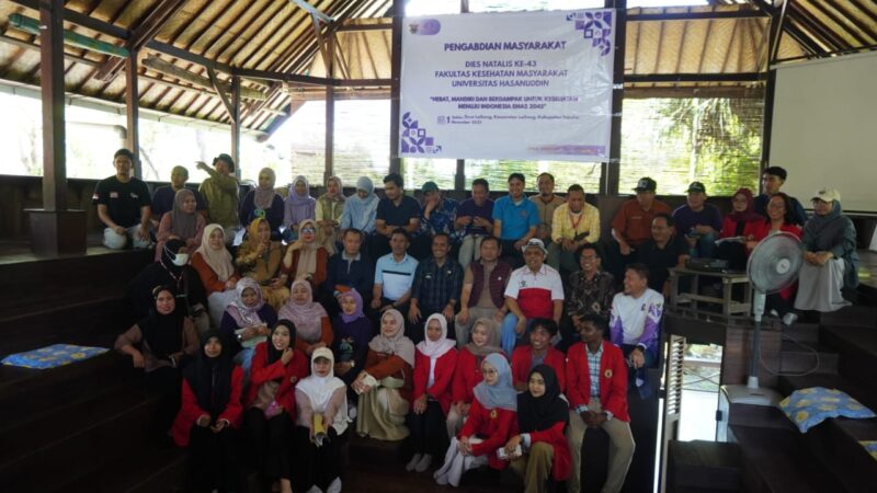 Fakultas Kesehatan Masyarakat Universitas Hasanuddin (FKM Unhas) memperingati Dies Natalis ke-43 dengan tema “Hebat, Mandiri dan Berdampak untuk Kesehatan menuju Indonesia Emas 2045”. Tahun ini, panitia FKM Unhas terdiri atas tenaga pendidik, dosen, mahasiswa S1 hingga S3, serta tiga mahasiswa internasional dari Hongkong, India, dan Liberia melaksanakan 19 kegiatan pengabdian masyarakat di 10 titik lokasi di Kecamatan Laikang, Kabupaten Takalar. Selain edukasi dan pemeriksaan kesehatan, panitia juga membagikan sembako untuk warga sekitar yang menjadi sasaran kegiatan.