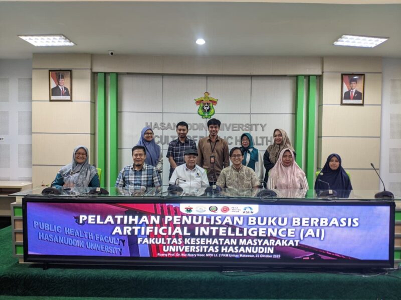 Makassar, 22 Oktober 2025 — Fakultas Kesehatan Masyarakat (FKM) Universitas Hasanuddin kembali menunjukkan komitmennya dalam penguatan kapasitas akademik dosen dan tenaga kependidikan melalui kegiatan Pelatihan Penulisan Buku Berbasis Artificial Intelligence (AI). Kegiatan ini diselenggarakan di Ruang Prof. Dr. Nur Nasry Noor, MPH Lt.2 FKM Unhas dan diikuti oleh dosen serta mahasiswa dari berbagai departemen.